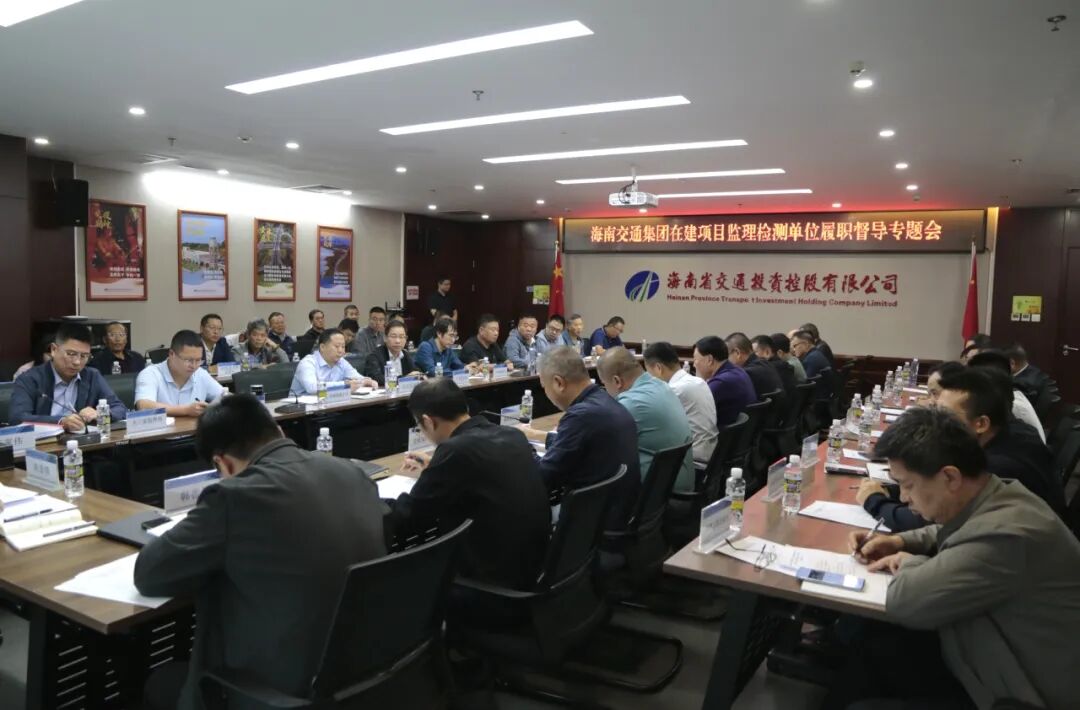 10月23日下午,海南交投召开2025年在建项目监理检测单位履职督导专题会。海南交投党委书记、董事长陈泰锋出席会议并讲话,总工程师、交通建设事业部总经理王家伟,工程管理部及海南交投项目公司、海南公路项目公司、洋浦港公司、港航公司、大三亚项目指挥部、五网合一项目指挥部等下属单位主要负责人,各在建项目总监理工程师、中心试验室负责人参加会议。 [更多]