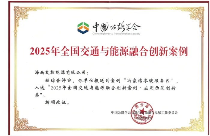 近日,海南交通集团旗下海南交控能源有限公司传来喜讯,在2025年全国交通能源领域评选中,冯家湾零碳服务区获评中国公路学会“2025年全国交通与能源融合创新案例”,保亭零碳服务区入选“2025年全国交通运输与能源融合创新发展典型案例”。两项行业殊荣的叠加,标志着海南交通集团在交通与能源协同发展的实践探索已形成可落地、可推广的成熟范式,树立了零碳服务区建设样板。 [更多]