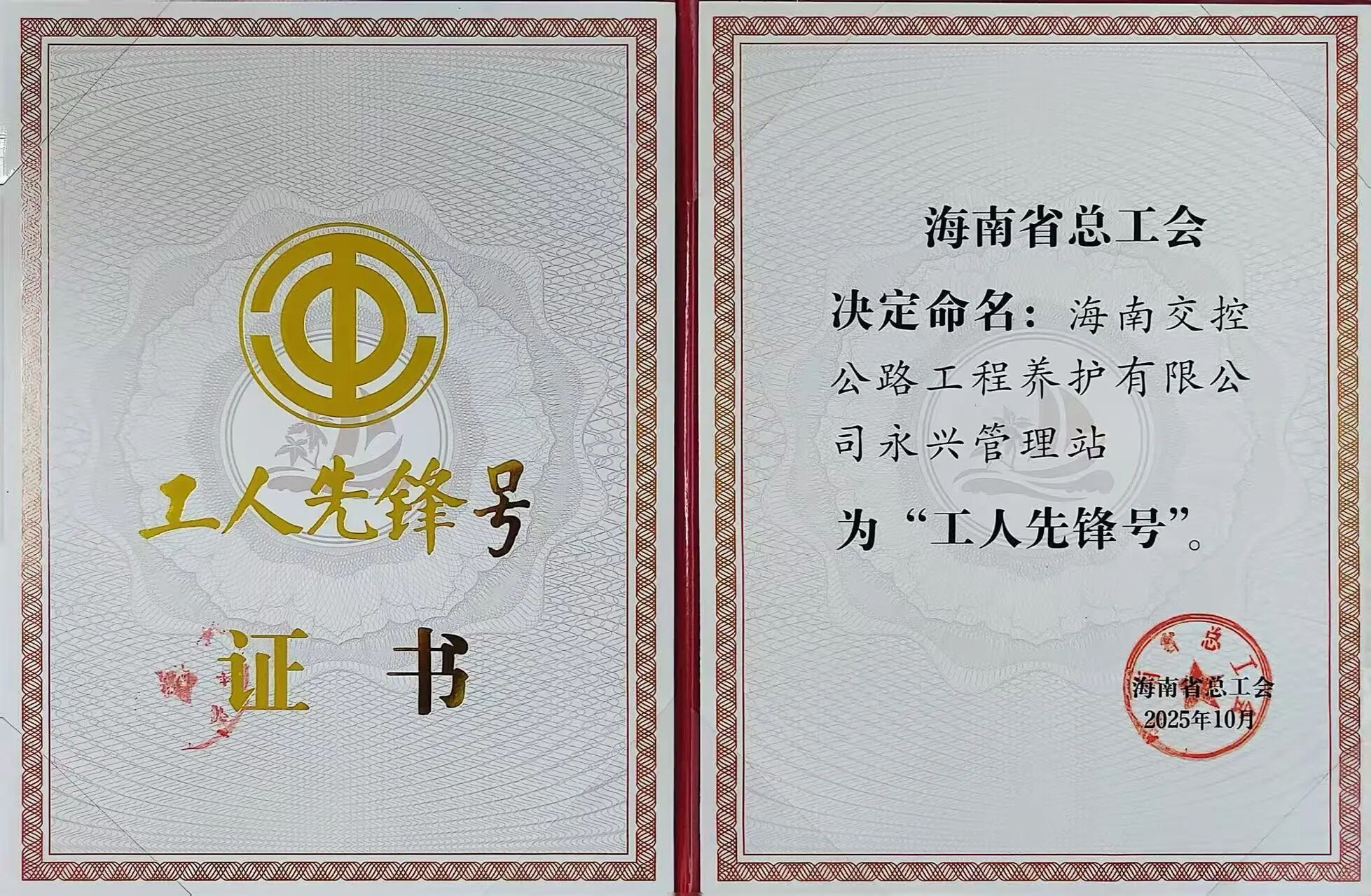 近日,海南交通集团旗下海南交投养护公司永兴管理站凭借卓越的专业素养、严谨的工作作风和突出的综合业绩,被海南省总工会授予“海南省工人先锋号”称号。此项殊荣既是对永兴管理站全体成员长期以来坚守一线、履职尽责、锐意进取的充分肯定,也是海南交投养护公司基层班组建设成果的集中体现。 [更多]
