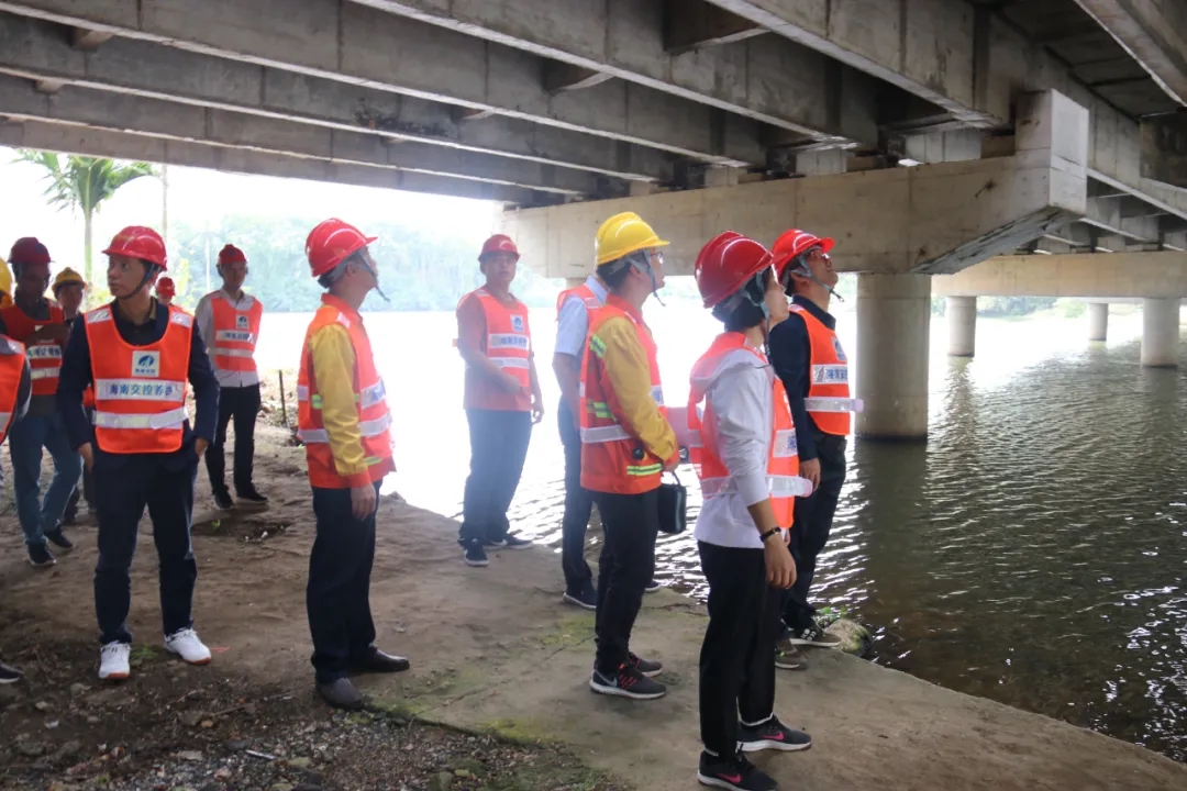 检查组对G98海南环岛高速K75+150泮水河大桥和K23+080塘柳桥两座桥梁进行现场检查,深入了解桥梁病害情况及处治计划。