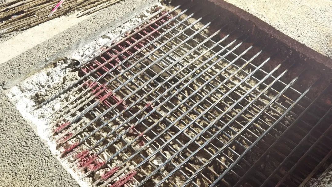 为确保路段在短时间内恢复通行,海南交控与时间赛跑,养护人员不眠不休进行抢通作业,现场切割锈蚀钢筋重新安装梁体顶板,并用混凝土浇筑桥面钢筋,再进行沥青混凝土面层施工。