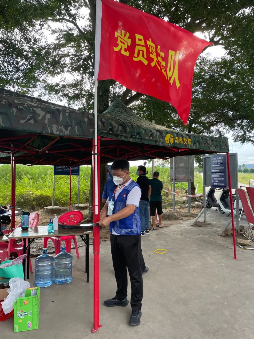 2022年8月10日受第七号台风“木兰”影响,强降雨导致妙林村、新联村委会卡口、核酸检测点多处帐篷受损。三亚疫情形势严峻,村里各类防疫物资短缺,一时难以补充进新的物资。魏世琦了解到这一情况后,及时向海南交控养护公司、海南交控党委汇报,海南交控党委协调从陵水购买了帐篷、行军床、酒精、测温枪等物资,经多方接力于8月13日上午11时送达妙林村村委会。收到物质后,村委会领导感动得热泪盈眶:“感谢海南交控,感谢志愿者,你们的物资太暖心、太及时了。”