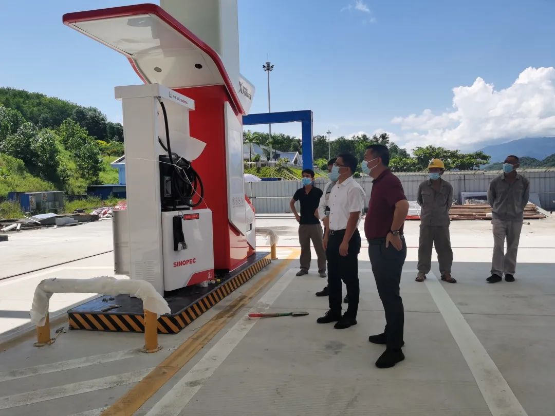 8月15日,海南交控党委副书记、总经理陈泰锋率队赴屯昌、枫木、东太服务区及阳江服务区综合能源补给站项目工地实地调研防疫保障工作。一路上,陈泰锋仔细检查、了解加油站营业场所人员扫码测温、防疫物资储备、营业场所消杀、员工核酸检测、经营保供、值班人员生活物资等情况,给一线员工送上口罩、防护服等防疫应急物资,并对加油站全力保障防疫物资和生活物资车辆能源供应、交通运输顺畅等工作给予充分肯定。