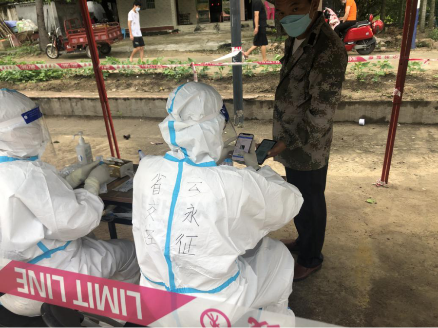 因工作调整,我们小组从新联村被抽调到了本轮疫情的重灾区——儋州社区。这里虽然离我家仅仅隔着一条马路,甚至抬头就能看见家里熟悉的屋顶,但却因防控要求和布满道路的围挡、卡口,我却不能回家见亲人一面,让我第一次真切感受到,什么叫“咫尺天涯”。也许正是因为在家门口工作,对家人的思念让我有些许牵绊,但这也给了我更多的信心和前行的动力。