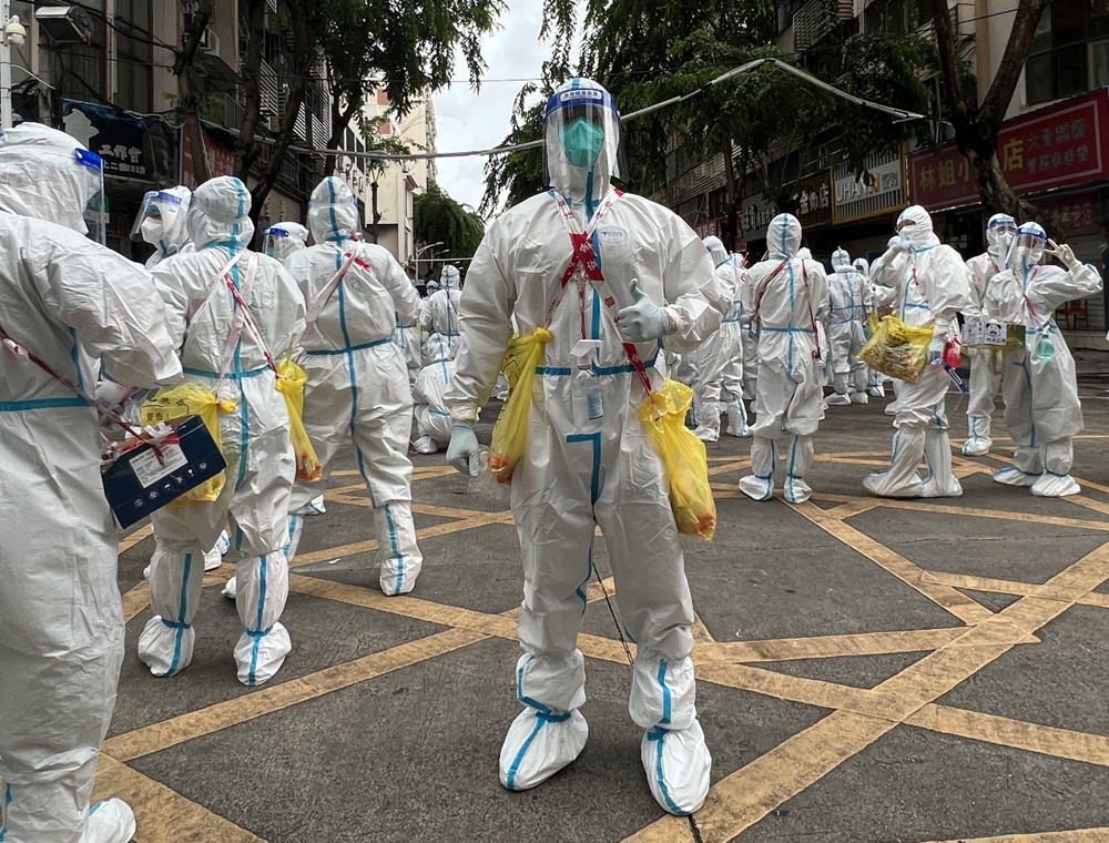 8月25日,短暂休整一天后,他们又身披白衣铠甲,斜挎酒精喷壶,不惧风险、冲锋在前,转战支援疫情较为严重的基层社区开展防控工作。面对条件简陋、人员密集的群租房,他们逐一爬楼梯、深入到户,哪怕听闻前方已有队友中暑呕吐甚至晕倒,哪怕眼前正一片汗雾模糊,脚步比铅还要沉重,呼吸像溺水一样困难,他们也没有一步的退缩,而是咬紧牙关、继续攀登,累计上门开展核酸信息采集共5823人(次),对方舱治愈及其密接实施居家隔离1405人,帮助社区守住了“零增长”底线、风险等级实现“两连降”。