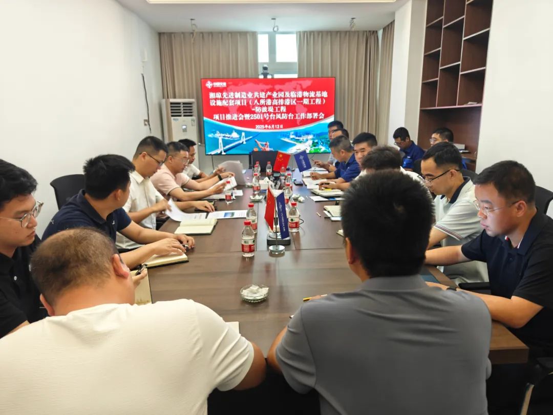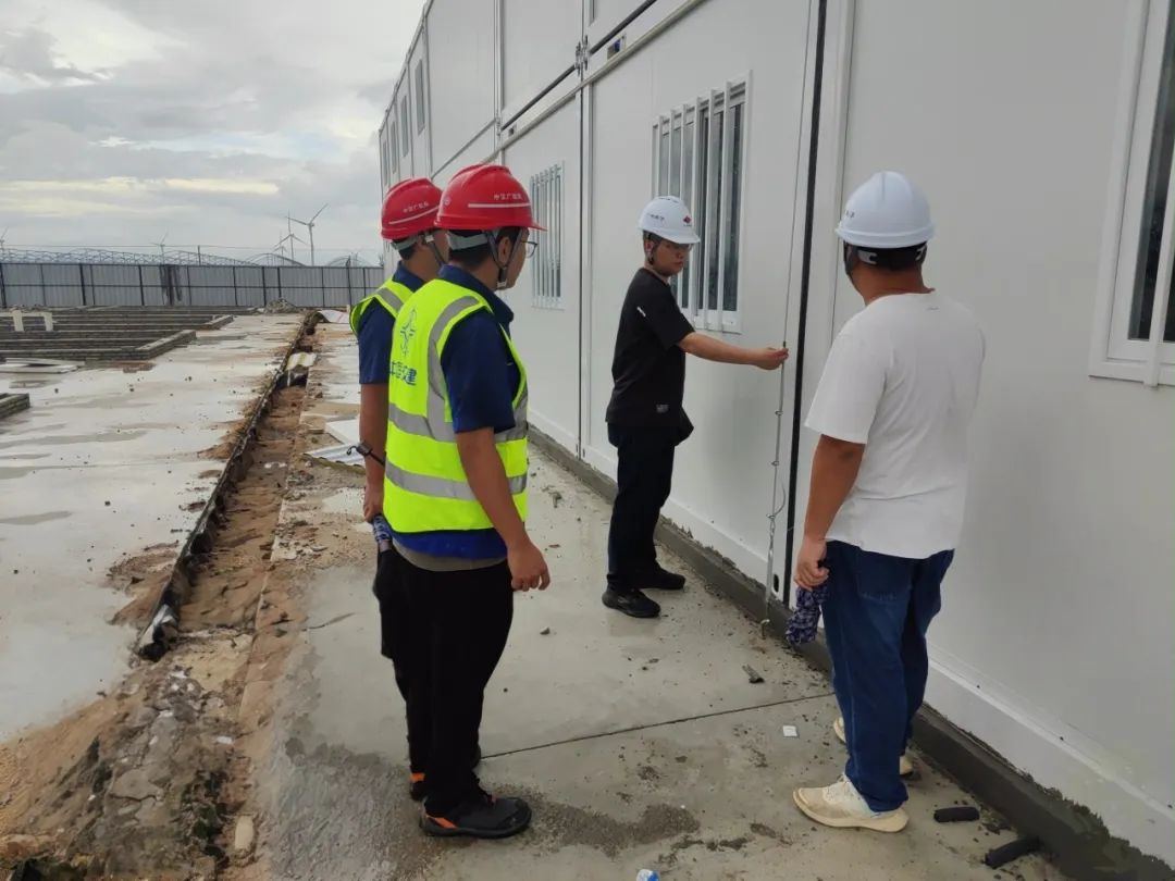 6月12日上午,项目指挥部迅速响应,召开防台工作部署会议,针对台风路径进行研判,明确“人员安全第一,设备转移优先”原则。会后,指挥部联合监理、施工单位开展现场排查,现场施工作业人员全部撤离至安全避难场所;项目临建板房使用防风缆绳进行加固;机械设备撤离至地势较高区域;预制场内全面断水断电;项目部储备的防台防汛应急物资充足。