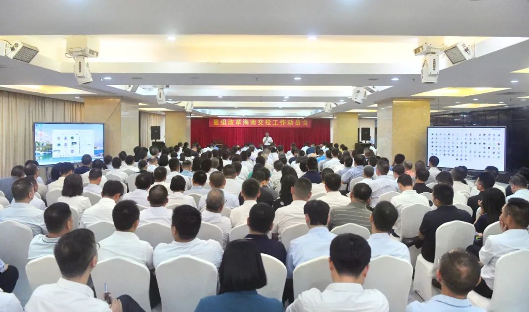 海南交投、海南高速、海南路桥、省交规院领导班子成员、中层干部,重组整合海南交投工作领导小组各专项工作组全体成员现场参会,海南交投系统全体干部职工共2000余人通过视频参会。