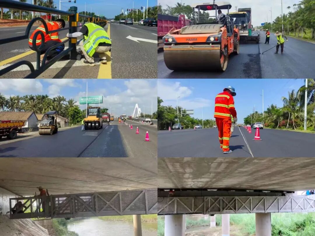 桥梁涵洞“强体魄”。对遴选出的40多座关键性大桥和涵洞进行“把脉会诊”和“精准手术”。不仅彻底处置桥面铺装破损、伸缩缝损坏、支座功能缺失等显性问题,更对结构安全、抗震性能、防水排水系统进行深度加固与完善。同步对嘉积大桥、大乐大桥、合口大桥等重点桥梁完善健康监测系统,更新信息标识标牌,补充消防、应急设施,确保结构安全与运营安全双达标。