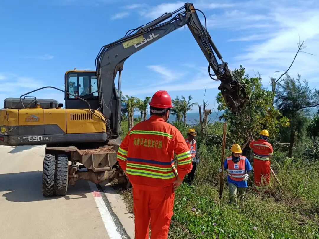 强台风“麦德姆”擦过期间,环岛旅游公路公司值守人员和管理站养护工人全员坚守岗位,严格执行领导带班和专人24小时值班制度,密切关注台风动态与公路状况。强风强降雨导致多条路段出现树木倒伏、路面积水等险情,在确保安全的前提下,养护队伍紧急赶往现场,在危险路段设置警示标志,对积水路段开展排水作业,清理倒伏树木,全力保障公路通行安全,用坚守诠释责任与担当。