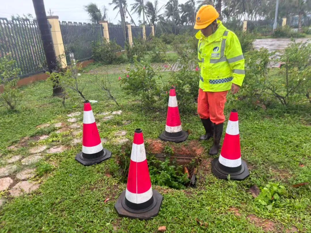公司领导带队深入全线检查部署防风防汛工作,重点对文昌、临高、澄迈、儋州等路段开展全方位排查,统筹调配应急物资和队伍力量,压实每一环责任。各养护站聚焦关键环节,迅速储备应急力量,开展防风防汛隐患排查治理,突出重点路段、重要设施、重型设备、重要结构物等排查加固,做好易堵易积水路段疏通及警示,协助劝导游客离开危险地带。环新英湾支线项目暂停施工,迅速转移低洼危险地带人员。