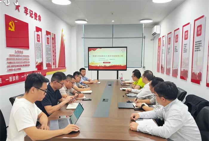 实地调研结束后,双方在大三亚项目指挥部召开交流座谈会,由公网公司党支部书记、董事长吴开贤围绕“智慧工地小组高效运转的党建保障措施”“党员在智慧工地技术创新与项目管控中的先锋模范作用”等内容进行了经验分享。随后,双方就目前智慧工地建设的技术落地、场景应用、管理优化,以及现有问题的整改提升方案等具体任务各抒己见,深入碰撞思想火花,共同凝聚了多项兼具创新性与实操性的协同推进共识。大三亚项目指挥部党支部纪检委员、副指挥长张治国在交流中强调,双方需牢牢把握党建与业务融合的核心要义,充分整合各自在工程建设实操、智慧技术研发、资源统筹协调等领域的优势力量,以党建“红”激活基建“智”的创新动能,切实把党组织的政治优势、组织优势转化为项目建设的发展优势,为智慧工地落地生根、开花结果贡献红色力量。