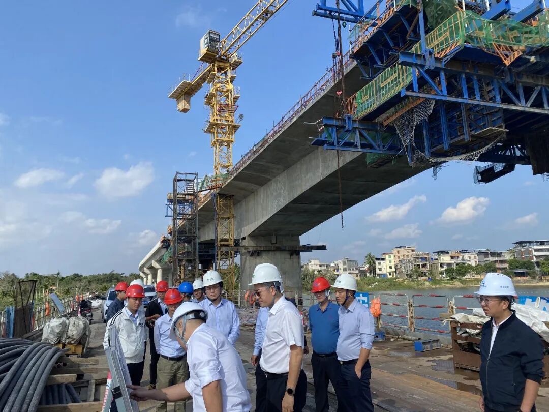 胡东一行深入施工现场,实地查看关键路段、桥梁建设进度,检查质量管控与安全措施落实情况,听取各参建单位的工作汇报。会上,胡东指出,省道S213等两个项目是省政府高度关注的重点项目,项目建成后对博鳌论坛对外交通疏导疏散、解决区域交通拥堵问题、提高论坛年会交通组织保障能力等具有重要意义。当前工程已进入关键攻坚阶段,他要求,一是全面梳理项目建设堵点难点,动态更新问题清单,强化沟通机制,及时反馈至责任部门,推动问题高效处置。二是锚定高标准建设要求,紧扣建设各关键环节,狠抓收尾施工质量管控,规范验收流程,做到管控无死角、责任全覆盖,确保工程质量过硬。三是切实提升全员安全意识,始终坚守“安全第一、质量为本”的核心原则,严禁以牺牲安全和质量为代价盲目抢工期、赶进度,坚决筑牢安全生产防线,杜绝各类安全事故发生。