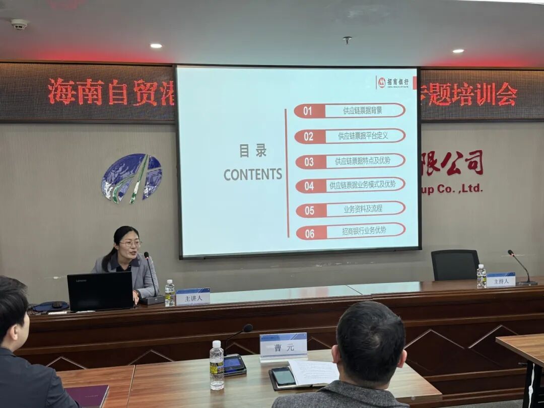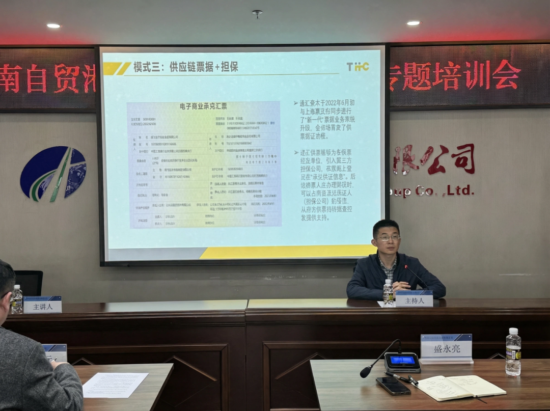 本次培训紧扣业务实际需求,特邀通汇集团及招商银行海口分行专家联合授课,内容聚焦四大核心板块精准展开:一是溯源政策背景,系统讲解供应链票据诞生的宏观政策背景,深入剖析其对产业链各方的核心价值。二是详解实操流程,全面讲解供应链票据的签发、流转、贴现全流程操作规范,结合平台注册指南和案例演示,助力参训人员快速熟悉系统功能、掌握操作要点。三是解析应用场景,通过实际业务案例,分析平台在降低资金成本、优化产业链支付结算等方面的具体应用。四是深化银企合作,招商银行海口分行分享供应链票据贴现政策及融资方案,为后续业务落地提供金融支持。