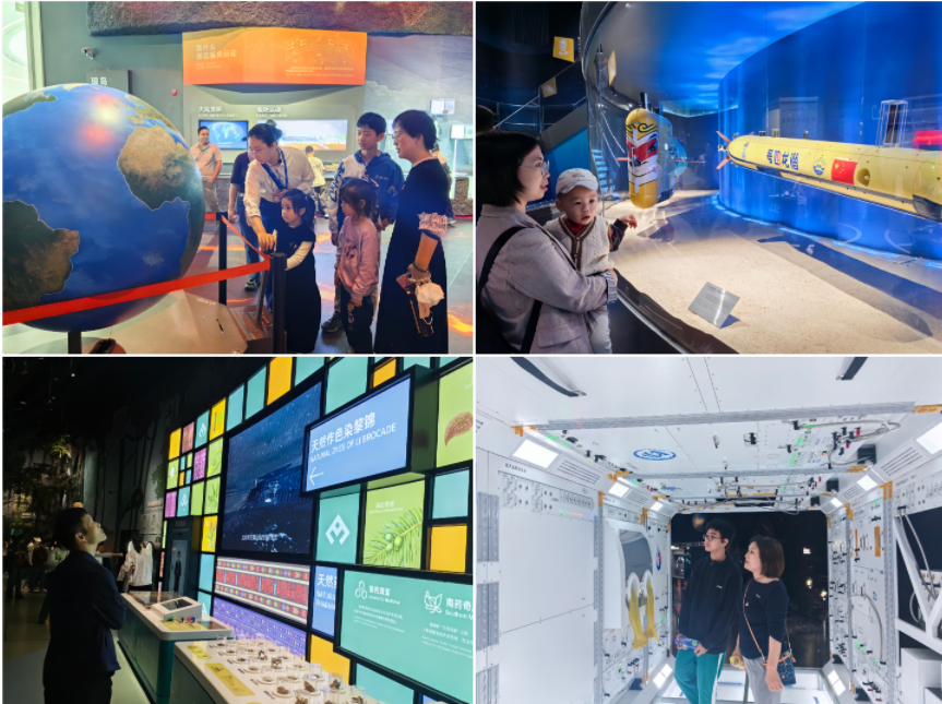 海南科技馆从二楼至五楼设置了“好奇天地”“热土探寻”“深海探秘”“深空探梦”四大主题展厅。党员干部与家属穿梭在各个展厅,时而驻足观察,时而动手操作,时而相互探讨。精心设计的互动展品,沉浸式的体验空间,生动有趣的科学展演,让活动党员在互动体验中感受科技力量,在亲情陪伴中厚植家国情怀。