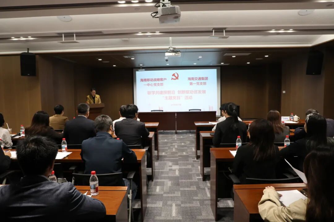 1月30日上午,海南交通集团第一党支部与海南移动战略客户一中心党支部联合开展“联学共建探前沿,创新驱动促发展”主题党日活动。海南交通集团党委委员、副总经理吴鹏同志出席活动,海南高速第一党支部党员一同参与。