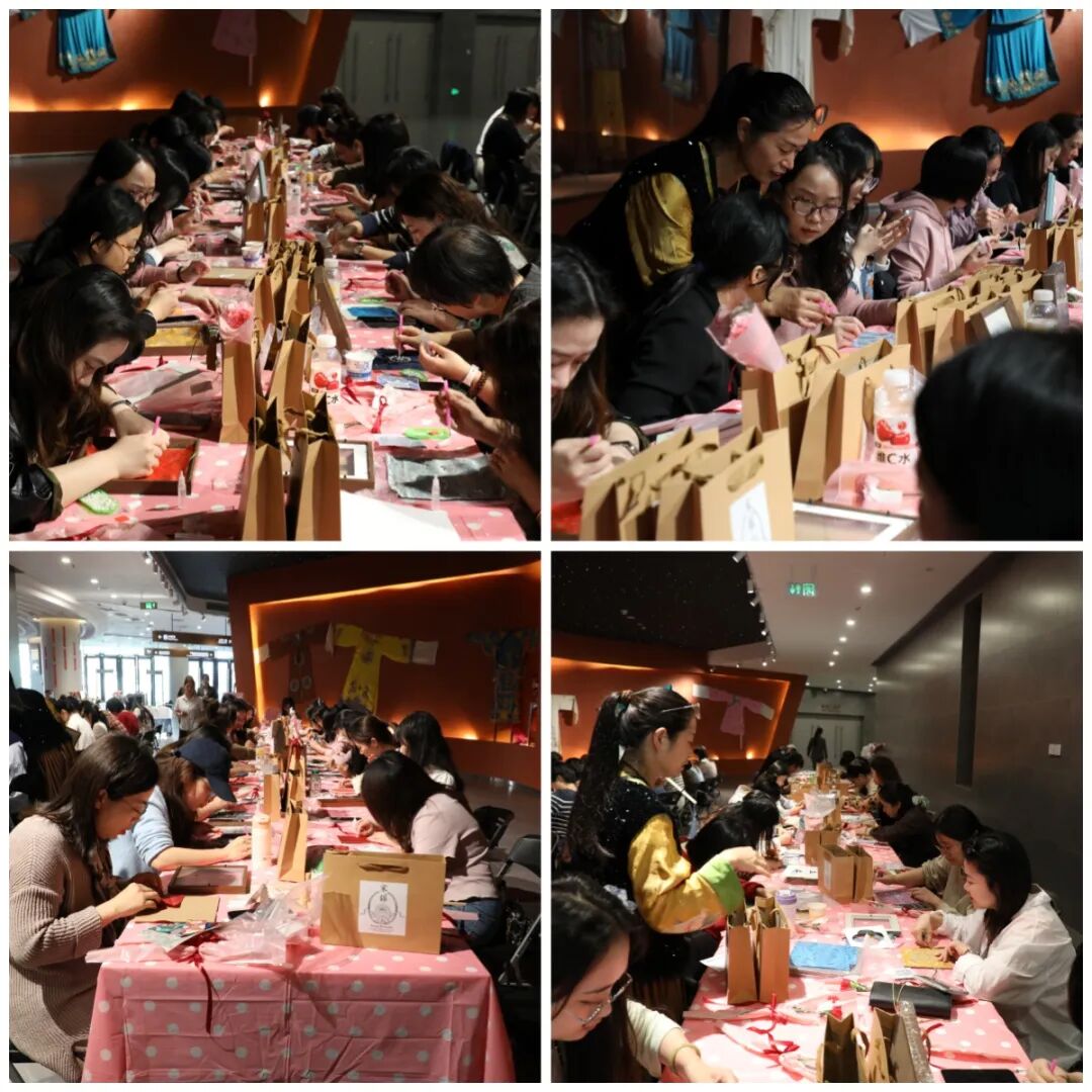 参观结束后,活动进入沉浸式手工环节——非遗宋锦珍珠画创作。在专业老师指导下,女职工们亲手触摸独特宋锦,细心点缀莹润珍珠,于一珠一饰的专注中感受宁静与愉悦。大家交流构思、分享技巧,在手工劳作中放松身心,在艺术创作中悦纳自我。随着一幅幅融合非遗元素与现代审美的作品相继完成,现场洋溢着满满的成就感与欢声笑语。