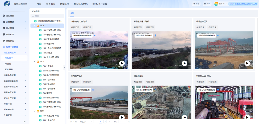 自开工建设以来,海南交通集团旗下G98环岛高速公路大三亚段扩容工程项目(以下简称“项目”)坚持把科技创新摆在突出位置,紧扣“数字化赋能、智能化建造、标准化施工、精细化管理”总体目标,推动科技手段深度嵌入质量、安全、进度管理各个环节,积极探索构建以“平台为支撑、智慧工地为载体、智能装备为抓手、科研创新为引领”的现代化建设路径,助力项目管理由传统粗放型向数智精细化转型,持续提升工程建设品质和管理效能。