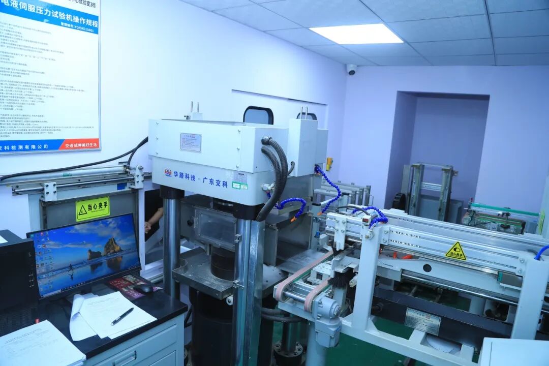 在数字试验室建设方面,依托项目“3个中心试验室+9个工地试验室”构建的全覆盖检测网络,对万能材料试验机、压力机等核心设备加装数据自动采集模块,试验全过程原始数据实现实时上传、全程留痕、不可篡改,系统自动甄别异常数据并精准推送至责任人员,搭配关键试验区域全覆盖视频监控,形成“视频监管+数据溯源+台账管控”三位一体全过程监管机制,从源头保障试验检测精准度。