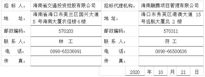 本次招标公告同时在中国招标投标公共服务平台(http://www.cebpubservice.com)、全国公共资源交易平台(海南省)(http://zw.hainan.gov.cn/ggzy/)、海南省交通投资控股有限公司(https://www.hainanjk.com/)(发布公告的媒介名称)上发布。