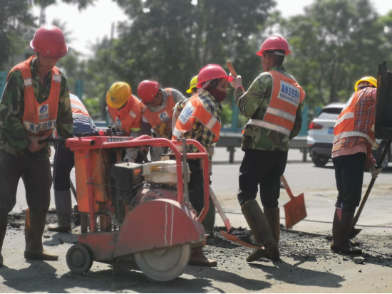 路面修复工作现场。