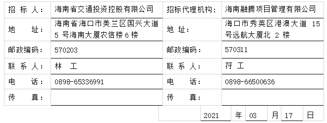 本项目将在中国招标投标公共服务平台(http://www.cebpubservice.com)、海南省交通投资控股有限公司网(https://www.hainanjk.com/)上发布竞争性磋商采购公告。