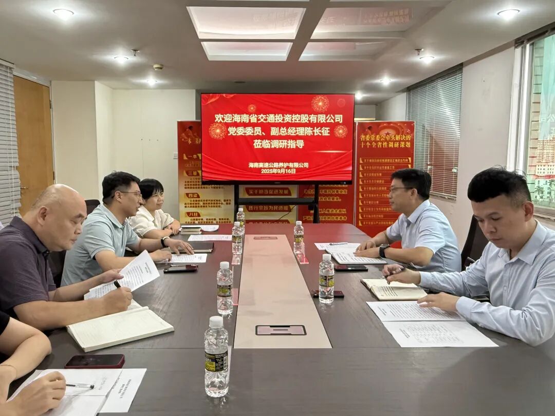 9月16日至19日,海南交投党委委员、副总经理陈长征深入海南交投养护板块调研指导工作,并围绕当前经营指标完成情况和重点工作进展、第四季度工作计划、对海南交投“十五五”发展规划的设想以及需协调事项等方面进行座谈交流。海南交投各养护公司班子成员及职能部门负责人参加调研座谈会。
