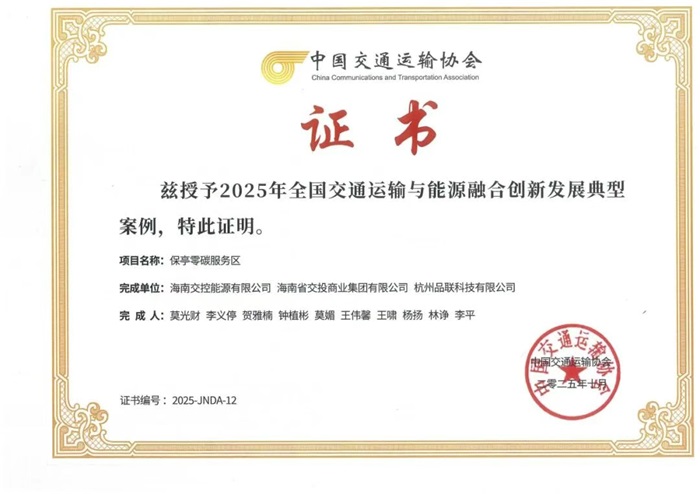 近年来,海南交通集团始终以“推动交通能源系统绿色升级”为核心目标,持续深耕“交通+新能源”融合领域,一方面聚焦低碳、零碳的交通用能场景打造,另一方面加快快充、超充充电网络布局,全面推动交通能源系统绿色升级。此次保亭、冯家湾服务区双双入选国家级创新与典型案例,不仅印证了海南交通集团在零碳供能领域的核心突破,更向全国交通运输行业输出了可复制、可推广的“海南经验”。