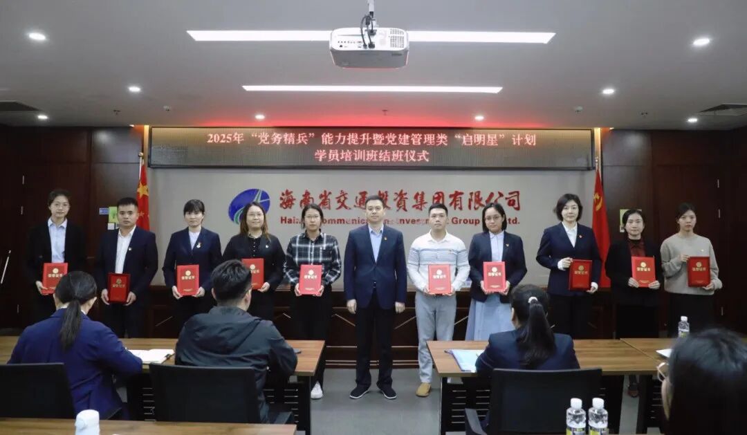 12月25日下午,海南交通集团举办2025年“党务精兵”能力提升暨党建管理类“启明星”计划学员培训班结班仪式,党委副书记潘勇出席并讲话,集团各级党组织专兼职党务工作人员、党建管理类“启明星”计划学员共计60余人参加会议。