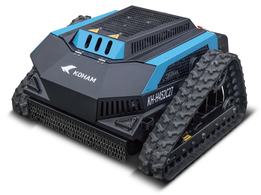 该设备搭载27英寸高强度甩刀,可高效切割各类杂草与细小灌木;油电混动系统兼顾了燃油动力的长续航与电驱系统的灵敏响应;宽幅履带底盘使其无惧泥泞、碎石,并能攀爬最大45度的坡道。同时,紧急停车、遥控启停、防飞溅挡链等多重安全设计,从源头上杜绝了作业风险,真正做到了“人不近险草自清”。