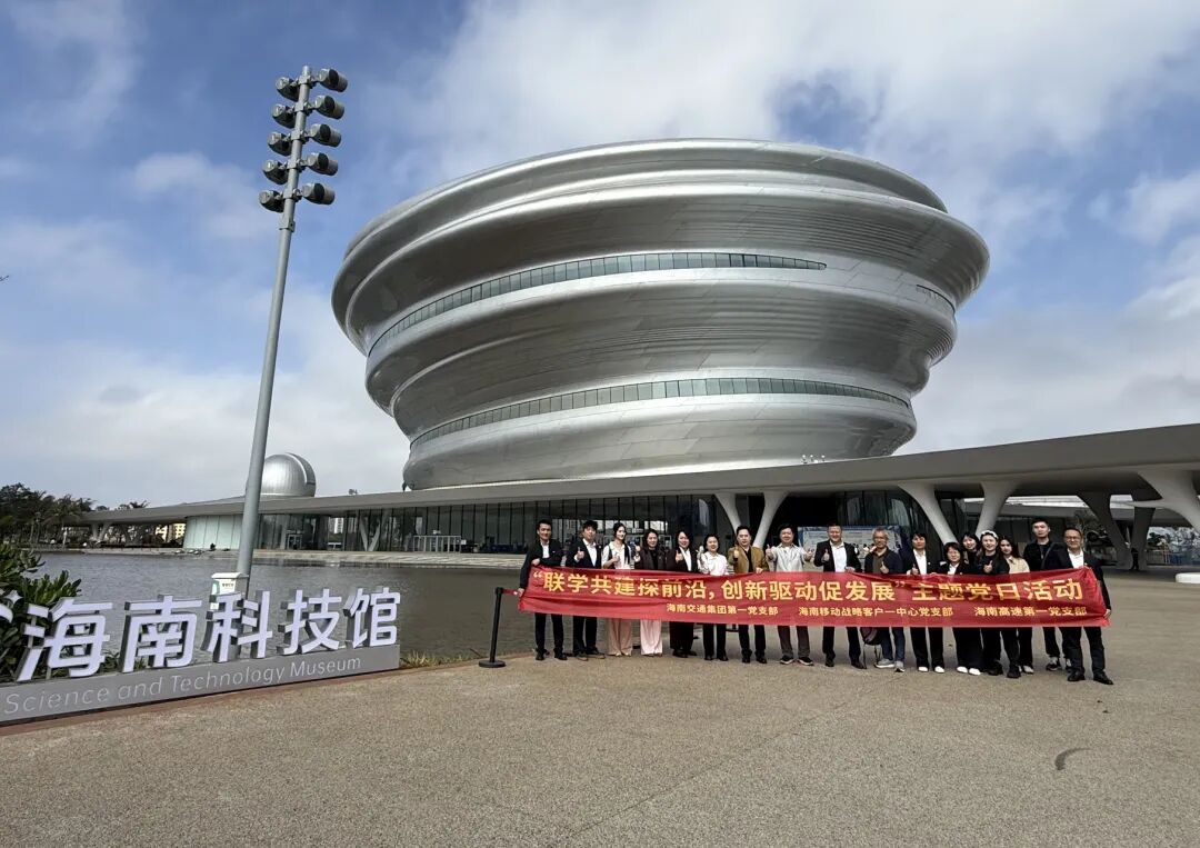 随后,全党员前往海南省科技馆参观学习。在科技馆前合影后,大家有序进入馆内,通过沉浸式、体验式的参观方式,近距离感受国家科技创新的最新成果与发展趋势。党员们认真聆听讲解,积极互动体验,深刻领悟“创新是引领发展的第一动力”的深远意义。