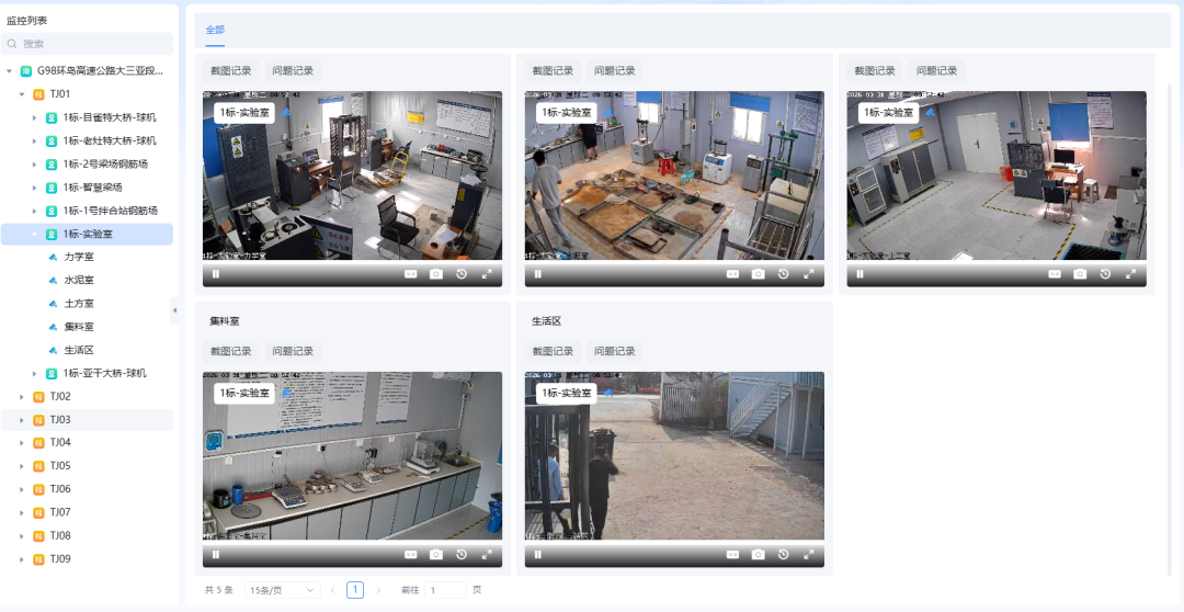 在数字试验室建设方面,依托项目“3个中心试验室+9个工地试验室”构建的全覆盖检测网络,对万能材料试验机、压力机等核心设备加装数据自动采集模块,试验全过程原始数据实现实时上传、全程留痕、不可篡改,系统自动甄别异常数据并精准推送至责任人员,搭配关键试验区域全覆盖视频监控,形成“视频监管+数据溯源+台账管控”三位一体全过程监管机制,从源头保障试验检测精准度。