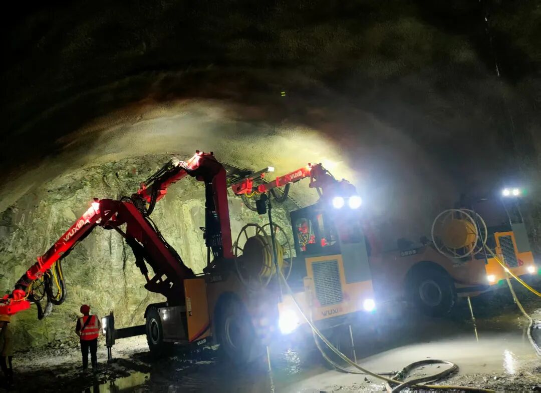 隧道工程领域,推广应用凿岩台车、液压栈桥、湿喷机械手、智能二衬台车、多功能防水作业台车、二衬模板打磨机器人、锚杆钻机、智能通风系统等成套设备,有效改善了初支、防排水、二衬施工质量,提升了隧道施工的机械化和标准化水平。