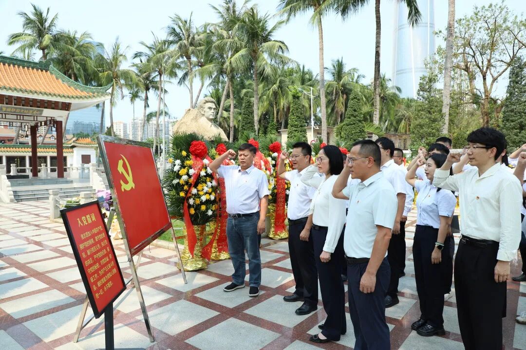 在琼崖革命斗争历史展馆,大家跟随讲解员深情的讲述,仿佛穿越回那段烽火连天的岁月。在场同志深受震撼与教育,纷纷驻足聆听,切身感悟革命先辈不怕牺牲、实干奋进的奋斗精神。随后,全体人员前往革命烈士陵园,面向革命烈士纪念碑瞻仰默哀、敬献花束,以庄重仪式缅怀先烈功绩、寄托深切哀思。全体党员还面对鲜红党旗举起右拳,重温入党誓词,在铮铮誓言中接受红色精神洗礼,进一步坚定理想信念,传承 “二十三年红旗不倒” 的琼崖革命精神。