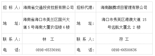 海南省交通投资控股有限公司委托海南融腾项目管理有限公司的海南省环岛旅游公路工程环境影响评价(不含昌江段和琼海段)技术服务招标于2020年9月14日在中国招标投标公共服务平台、全国公共资源交易平台(海南省)、海南省交通投资控股有限公司发布招标公告,本项目招标文件作如下补充说明,本补遗书与招标文件有不一致之处,以本补遗书为准。