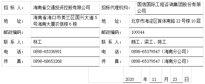 (十八)、修改开标时间及地点,原开标时间为:2020年12月07日08时30分;开标地点为:海口市国兴大道9号海南省公共资源交易服务中心207室。