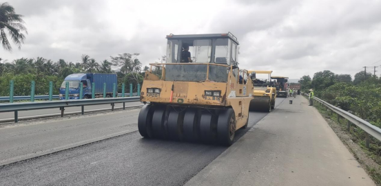 为消除行车安全隐患,进一步提升路面通行质量,给广大群众带来安全、舒畅的道路通行环境,海南交控公路工程养护有限公司决定实施万宁路面水毁修复工程,对万宁段K137+700-K155+100上行23处病害严重路段的路面进行应急修复,该项目于11月21日开始施工,采用铣刨原路面9cm,重新摊铺沥青面层9cm。